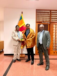 Dr. V. R. S. Sampath, Chairman of the World Tamils Economic Conference, and Mr. John Joseph, Director of International Sales, 3J Medical Supplies, met with Dr. Ganesanathan Geathiswaran, Deputy High Commissioner of Sri Lanka on 6th November 2025. During the meeting, they expressed keen interest in establishing dialysis centers and providing medical supplies at reasonable costs, as well as exploring the possibility of setting up dialysis solution manufacturing and dialysis kit production units in Sri Lanka.