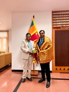 Dr. V. R. S. Sampath, Chairman of the World Tamils Economic Conference, and Mr. John Joseph, Director of International Sales, 3J Medical Supplies, met with Dr. Ganesanathan Geathiswaran, Deputy High Commissioner of Sri Lanka on 6th November 2025. During the meeting, they expressed keen interest in establishing dialysis centers and providing medical supplies at reasonable costs, as well as exploring the possibility of setting up dialysis solution manufacturing and dialysis kit production units in Sri Lanka.