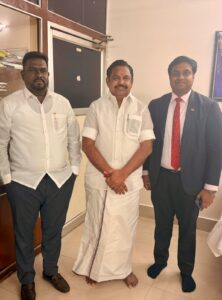 The Deputy High Commissioner of Sri Lanka for Southern India, Dr. Ganesanathan Geathiswaran, facilitated a courtesy call between Mr. Edappadi K. Palaniswami, former Chief Minister of Tamil Nadu and General Secretary of the All India Anna Dravida Munnetra Kazhagam (AIADMK), and the Hon. Deputy Minister for Plantation and Community Infrastructure of Sri Lanka, Mr. Sundaralingam Pradeep, in Chennai on 19 December 2025. During the meeting, views were exchanged on the current situation in Sri Lanka. The Hon. Deputy Minister also extended an invitation to Mr. Palaniswami to visit Sri Lanka at a time  convenient to him.