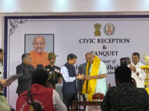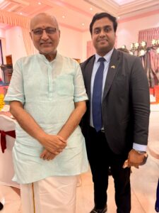 The Deputy High Commissioner of Sri Lanka for Southern India, Dr. Ganesanathan Geathiswaran, participated in the civic reception followed by a banquet hosted by Mr. R. N. Ravi, Hon’ble Governor of Tamil Nadu, in honour of the Hon. C. P. Radhakrishnan, Vice-President of India. The event was held at Bharathiar Mandapam, Lok Bhavan, Chennai, on 02 January 2026, marking the maiden visit of the Vice-President to the State capital after assuming office. During the event, the Deputy High Commissioner held fruitful discussions with the Hon. C. P. Radhakrishnan, Vice-President of India, on strengthening Sri Lanka–India cooperation, particularly in the fields of education, industry, and healthcare.