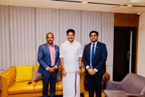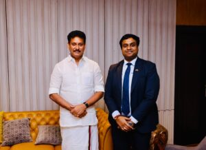 The Deputy High Commissioner of Sri Lanka, Dr. Ganesanathan Geathiswaran, along with Mr. Cecil Sunder, Director of Data and AI at Microsoft, paid a courtesy call on Hon. Mr. Anbil Mahesh Poyyamozhi, Minister for School Education of Tamil Nadu. During the meeting, they discussed collaborative opportunities in the field of education, including initiatives to integrate technology and AI-driven solutions to enhance teaching and learning outcomes. The discussions also focused on strengthening educational ties between Sri Lanka and Tamil Nadu through technology-enabled programs and knowledge-sharing initiatives.