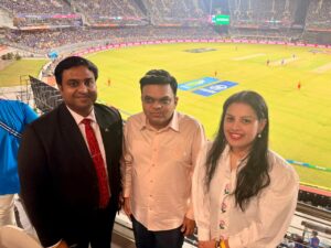 The Deputy High Commissioner of Sri Lanka in Chennai, Dr. Ganesanathan Geathiswaran, attended a match of the ICC Men’s T20 World Cup as a Special Guest at the invitation of the President of the Tamil Nadu Cricket Association. The event was also attended by several distinguished personalities, including the Consul General of Australia, Ms. Silai Zaki, and renowned musical director Mr. Anirudh Ravichander. During the match, the Deputy High Commissioner met Mr. Jay Shah, Chairman of the International Cricket Council (ICC), and exchanged cordial greetings on the sidelines of the event.